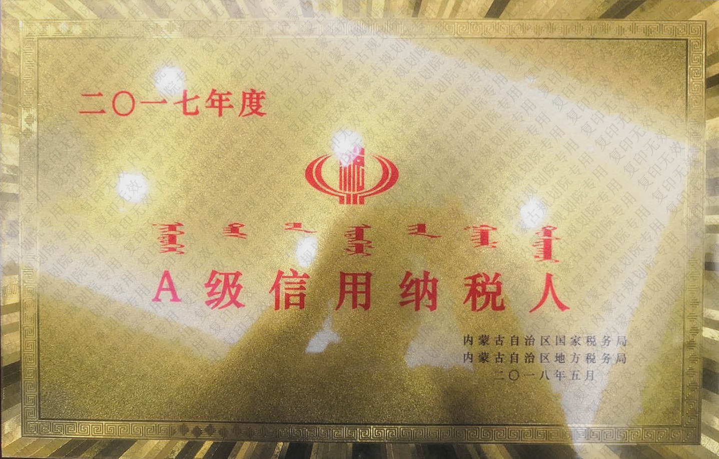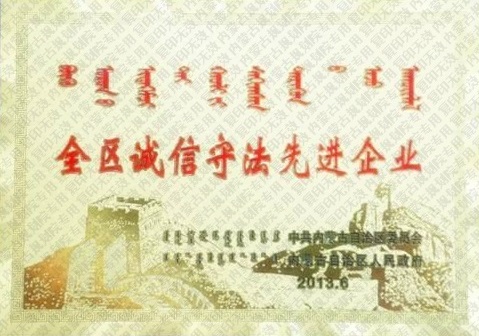 內蒙古自治區誠信守法先進(jìn)企業(yè)