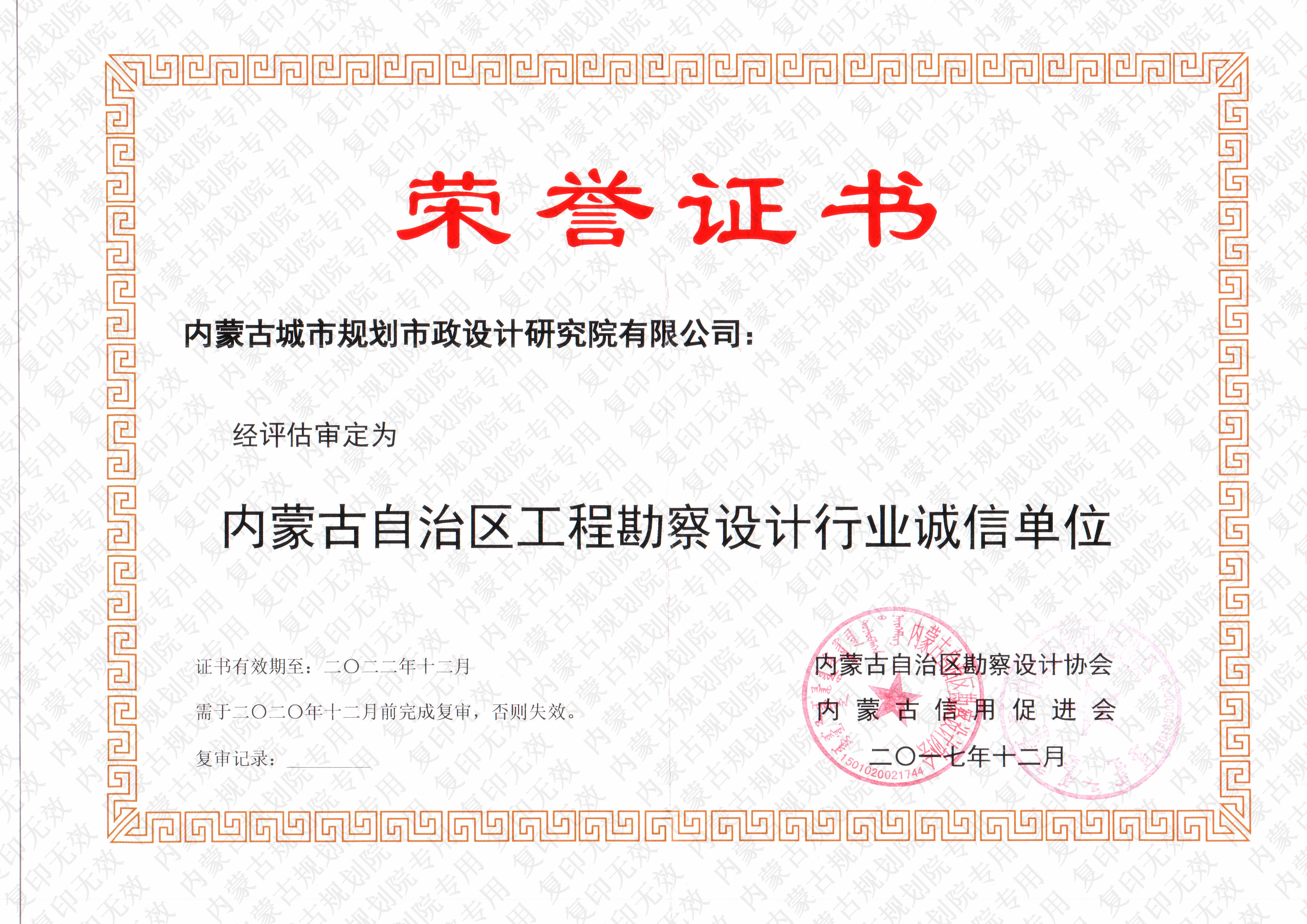內蒙古自治區工程勘察設計行業(yè)誠信單位