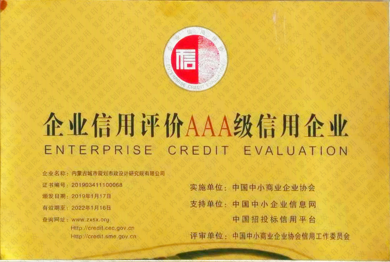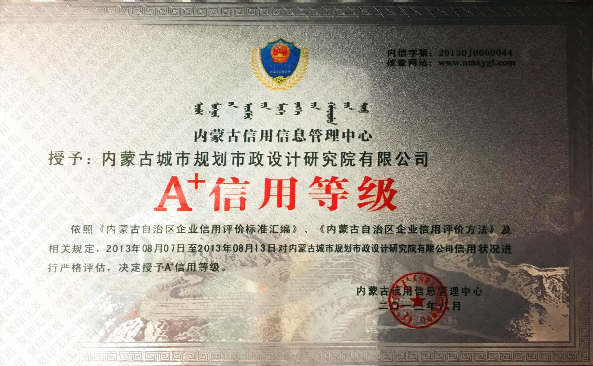 內蒙古自治區城市規劃行業(yè)公信力單位